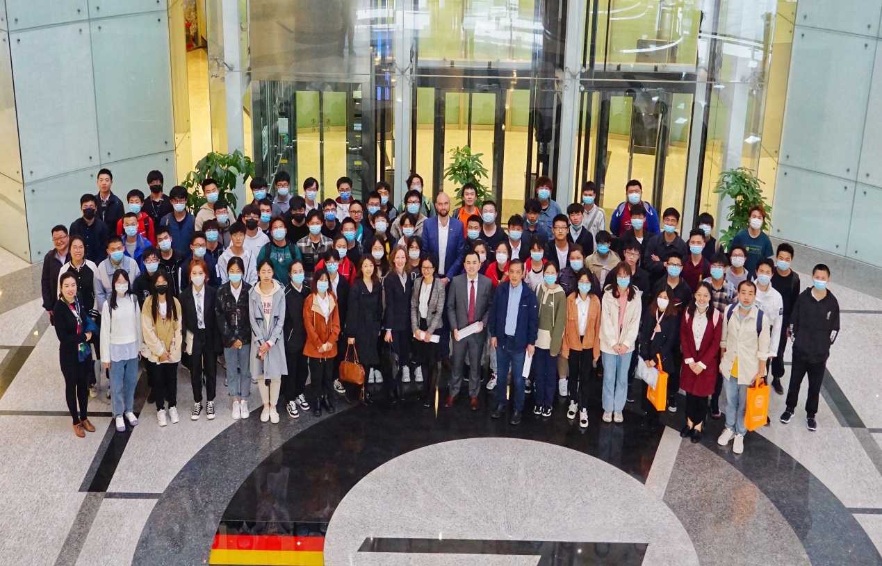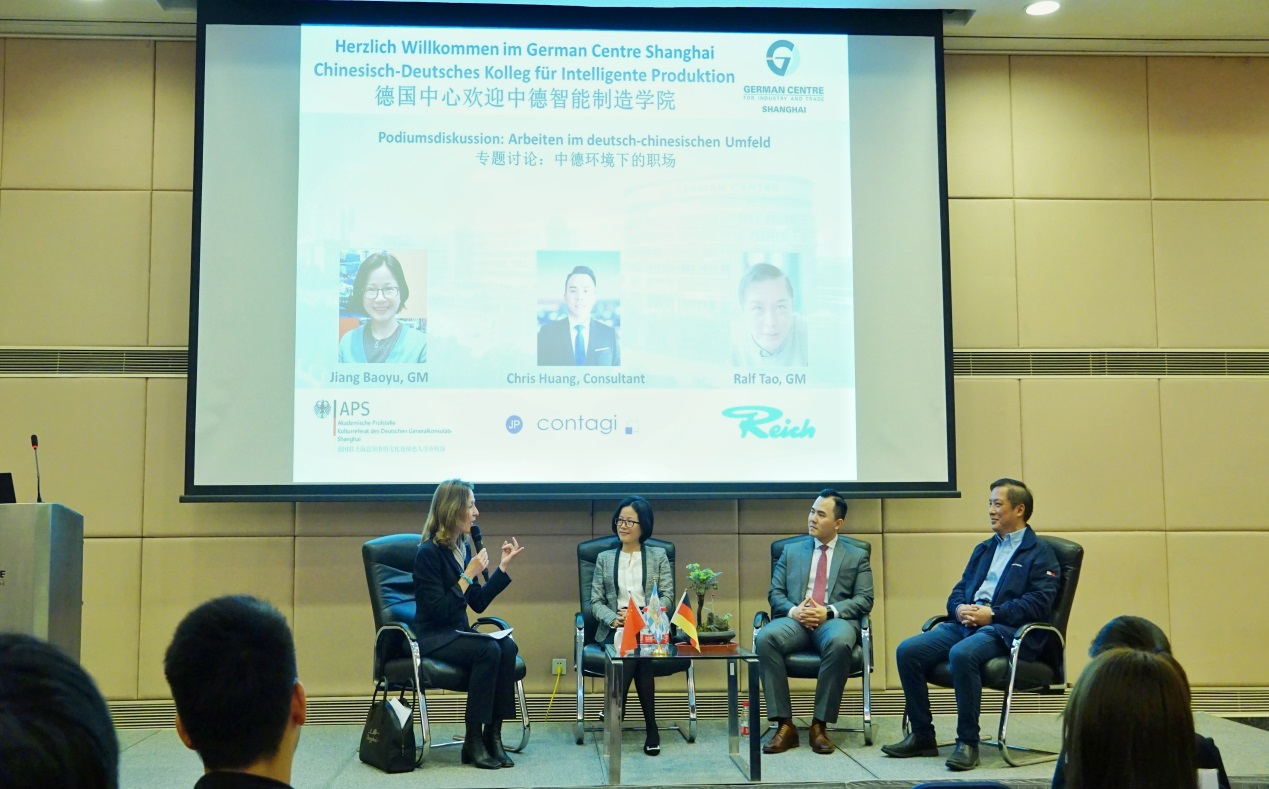 随后,同学们参加了一场题为“中德环境下的职场”专题报告,德国中心邀请了入住的三家行业内知名度高、有影响力的机构及企业专家为同学们分享学习和工作的经验。