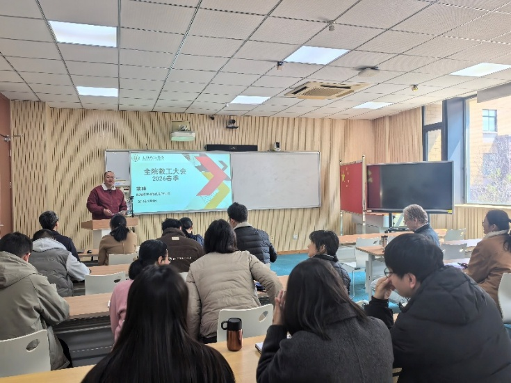 新学期伊始,为深入贯彻国家教育改革战略、上海市高等教育综合改革部署及学校“十五五” 发展规划,学院召开 2026 年春季学期全院教职工大会,总结发展成就、谋划新学期布局、明确年度核心任务,凝聚全院力量推动应用型人才培养与产教融合高质量发展。
