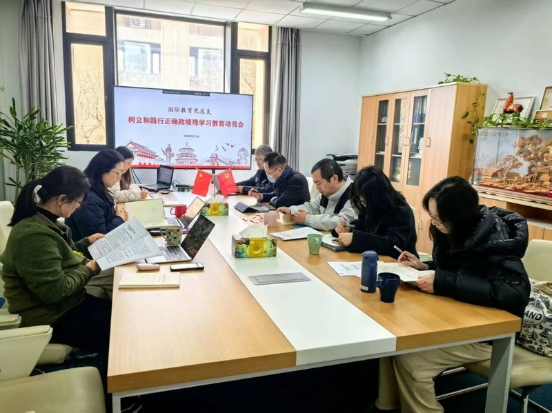 国教学院党支部书记潘娜传达了《国际教育党总支开展树立和践行正确政绩观学习教育实施方案》要求,并对学院树立和践行正确政绩观学习教育工作进行动员部署。党员纷纷表示:要深刻把握树立和践行正确政绩观的核心要求,并贯穿到来华留学生招生、培养、管理、服务等具体工作中去,以务实作风、过硬本领来推动来华留学工作发展,助力学校教育对外开放与国际化办学高质量发展。