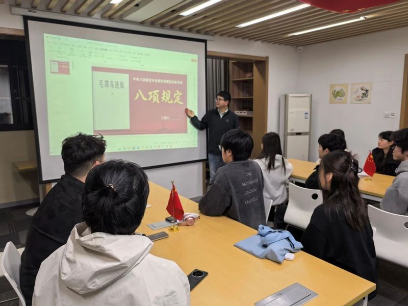 入党积极分子还全程参加了德泰书院“党建进围合”党建学习,与党员师生一起认真研讨。国际教育党总支凯劳学院党支部青年博士党员樊星星领学了“从《毛泽东选集》到中央八项规定精神:中国共产党作风建设的历史传承与时代创新”;组织员李玲老师领学了《中国共产党章程》;学生党员王可欣、王凡凡领学了“深入贯彻中央八项规定精神,锤炼务实作风”。学员们纷纷表示,通过系统学习深刻认识到党员所承载的崇高使命。来自凯劳学院的入党积极分子瞿康敉分享到:“作为新时代青年,我们将以‘功成不必在我,功成必定有我’的担当精神,在专业学习、社会实践、国际交流等领域勇当先锋,用实际行动践行对党的忠诚,努力向党组织交出一份满意答卷。”