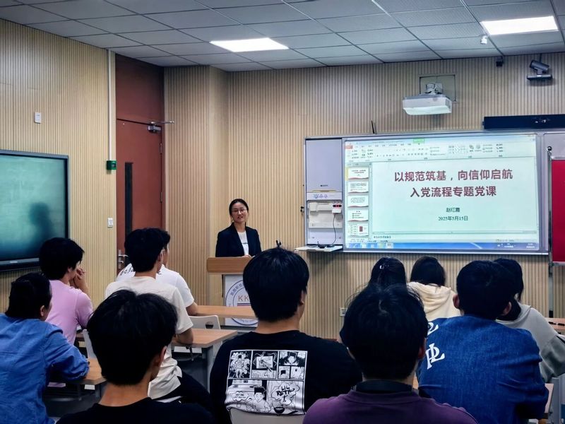 5月15日开班仪式上,国际教育党总支副书记赵红霞进行了动员讲话,并以“规范筑基,向信仰启航”为主题,为入党积极分子们上了一堂入党流程专题党课。她围绕党员发展“控制总量、优化结构、提高质量、发挥作用”十六字方针,结合《中国共产党发展党员工作细则》,对申请入党、入党积极分子培养、发展对象考察、预备党员接收、预备党员转正五个阶段的25个步骤进行细致讲解。赵红霞强调,党员发展是党的建设的源头活水,全体学员要进一步端正入党动机,以“思想入党”为引领,以“行动入党”为实践,在理论学习中坚定理想信念,在实践锻炼中强化责任担当。